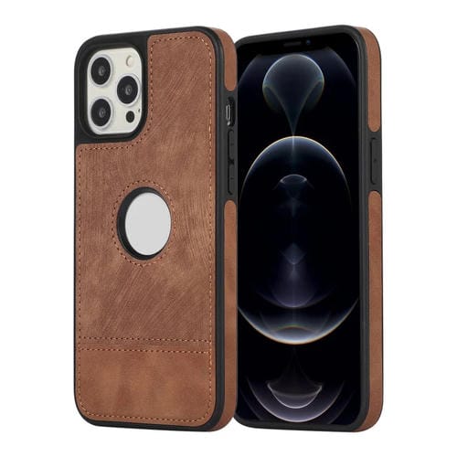 Funda para iPhone 12 Pro Max Empalme Costura Caja de Teléfono de PU con Recorte (Marrón)
