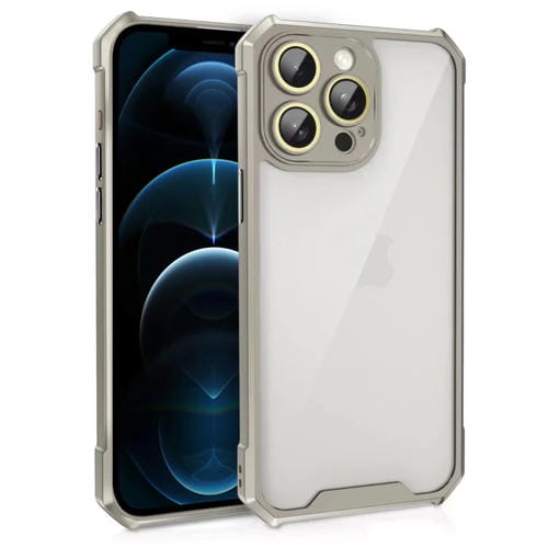 Estuche Acrílico para iPhone 12 Pro Max a Prueba de Golpes con Película de Vidrio para Lentes (Gris)