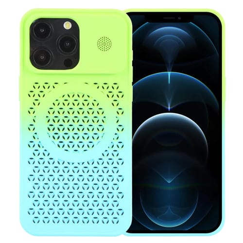 Estuche Magnético para iPhone 12 Pro Max con Aromaterapia y Enfriamiento en Forma de Panal (Verde Azul)