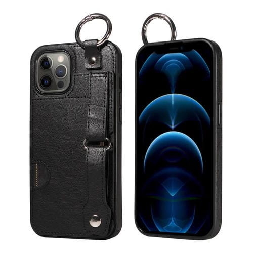 Estuche para Teléfono iPhone 12 Pro Max con Anillo y Ranura para Tarjeta Textura de Pantorrilla (Negro)