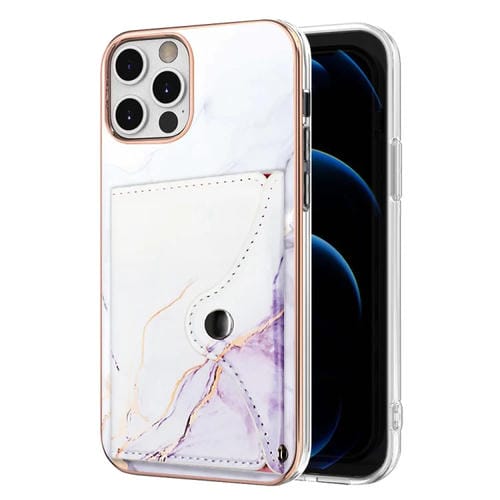 Estuche para Teléfono iPhone 12 Pro Max con Ranura para Tarjeta Imd Patrón Mármol (Blanco y Morado)