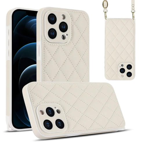 Estuche para Teléfono iPhone 12 Pro Max Textura Rómbica con Cordón Doble (Blanco)