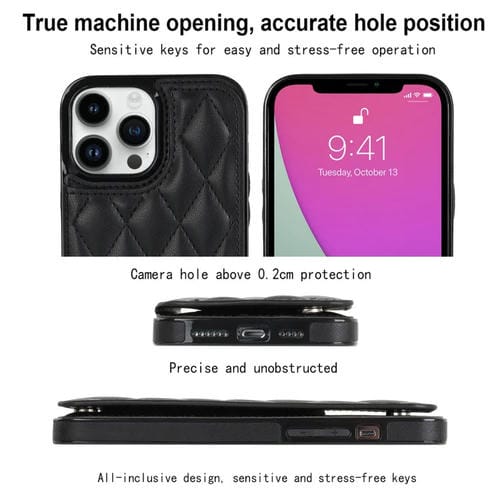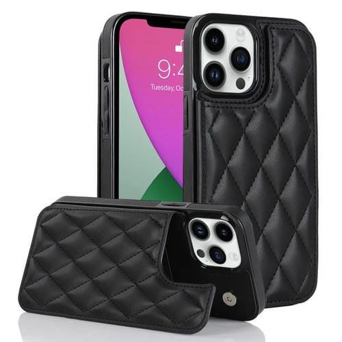 Estuche para teléfono iPhone 12 Pro Max Cuero de PU Rómbico con Doble Hebilla (Negro)