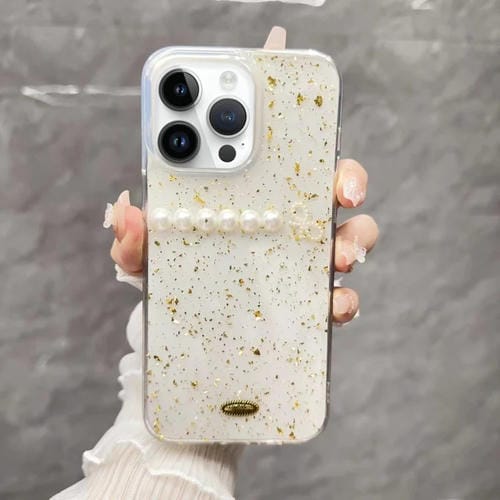 Estuche para Teléfono TPU iPhone 12 Pro Max Lazo de Perlas Lámina Dorada (Perla)