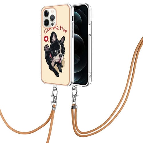 For iPhone 12 Pro Max Double-sided Electroplating IMD Phone Case with Lanyard (Lucky Dog)