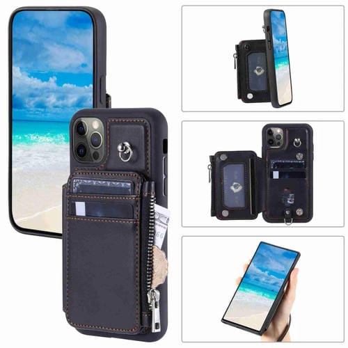 For iPhone 12 Pro Max RFID Phone Case with Zipper Card Slots (Black)