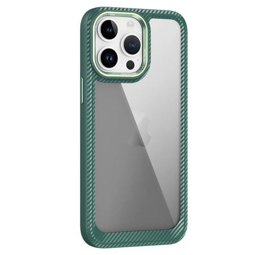 Caja del Teléfono para iPhone 12 Pro Max Fibra de Carbono Panel Trasero Transparente (Verde)