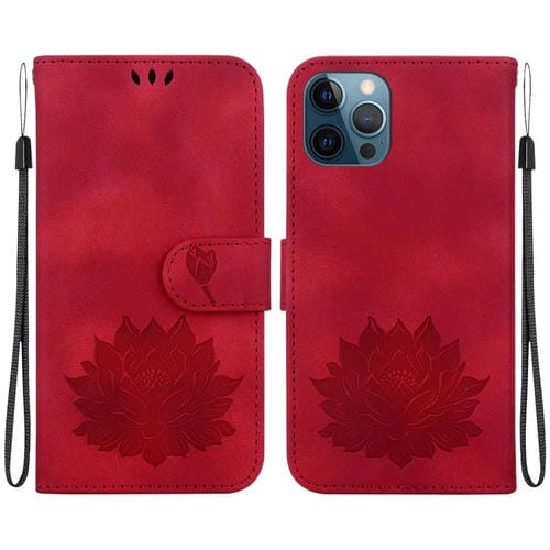 Funda de Cuero iPhone 12 Pro Max con Relieve de Loto (Rojo)
