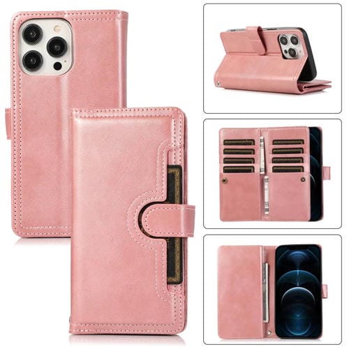 Funda para Teléfono iPhone 12 Pro Max Cuero Ranura para Tarjeta y Pulsera (Oro Rosa)