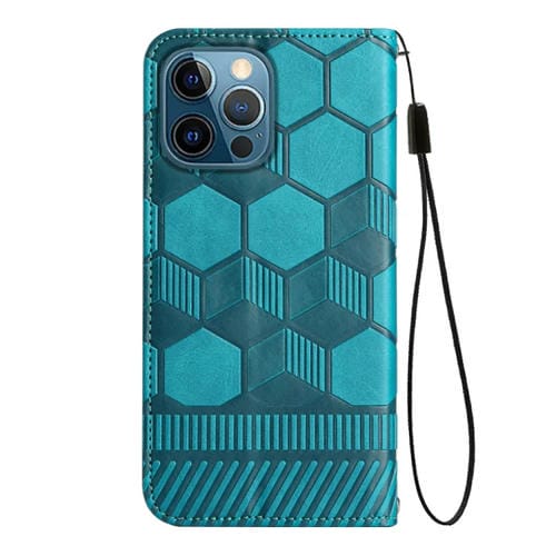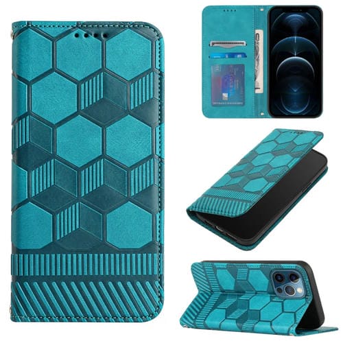 For iPhone 12 Pro Max Football Texture Magnetic Leather Flip Phone Case (Light Blue)