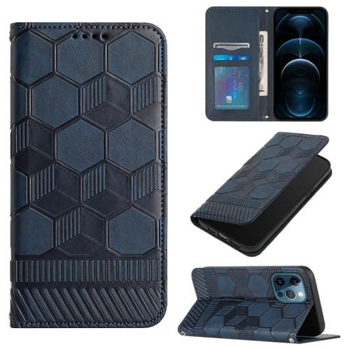 For iPhone 12 Pro Max Football Texture Magnetic Leather Flip Phone Case (Dark Blue)