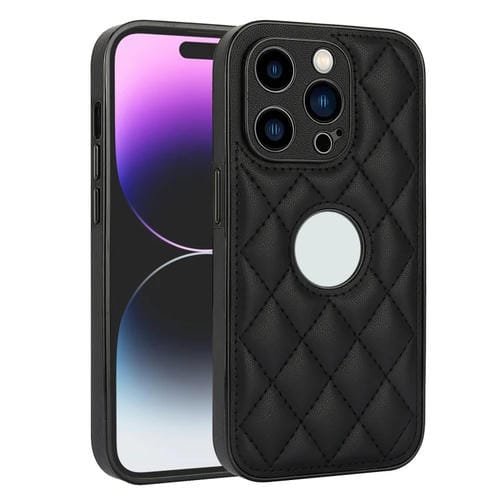 Funda para Teléfono iPhone 12 Pro Max Contraportada de Cuero Rómbico (Negro)