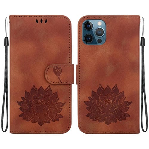 Funda para Teléfono iPhone 12 Pro Max Cuero con Relieve de Loto (Marrón)