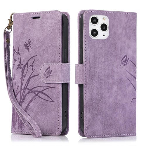 Funda para Teléfono iPhone 12 Pro Max Cuero Relieve Mariposa Orquídea (Púrpura)