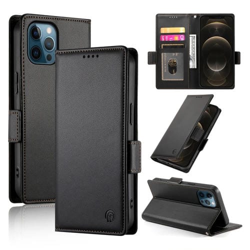 Funda para Teléfono iPhone 12 Pro Max Cuero Esmerilado Magnético con Hebilla Lateral (Negro)