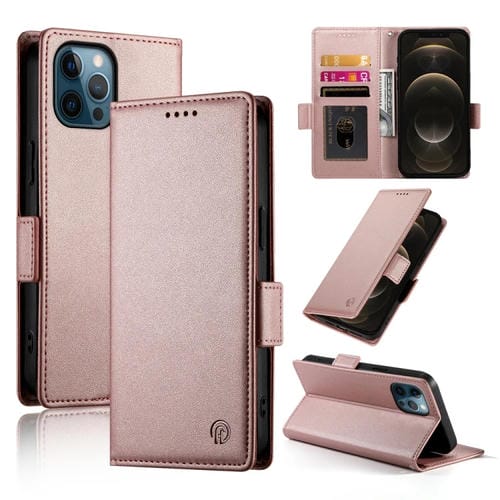 Funda para Teléfono iPhone 12 Pro Max Cuero Esmerilado Magnético con Hebilla Lateral (Oro Rosa)