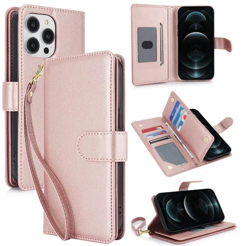 Funda para Teléfono iPhone 12 Pro Max Cuero Rfid Billetera MultiTarjeta (Oro Rosa)