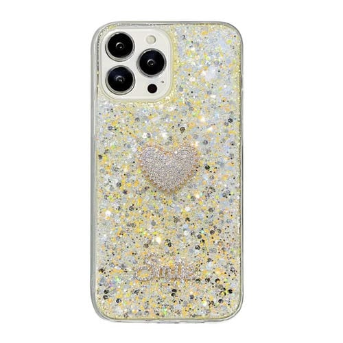 Funda para Teléfono TPU Epoxi iPhone 12 Pro Max Corazón de Diamante Lentejuelas Estrelladas (Amarillo)