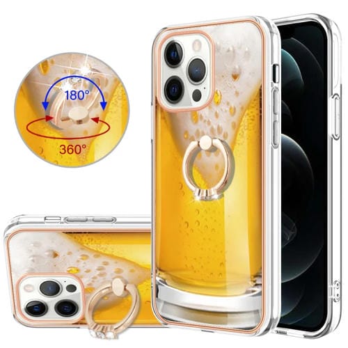 Funda para iPhone 12 Pro Max Galvanoplastia Imd Doble Cara con Soporte para Anillo (Cerveza de Barril)