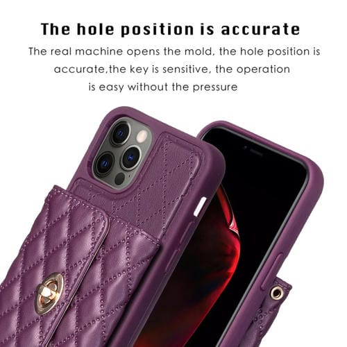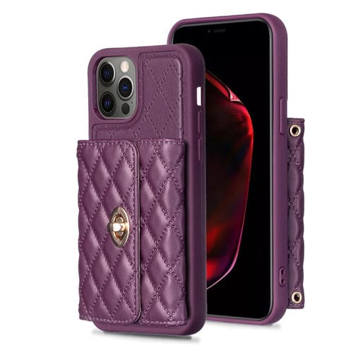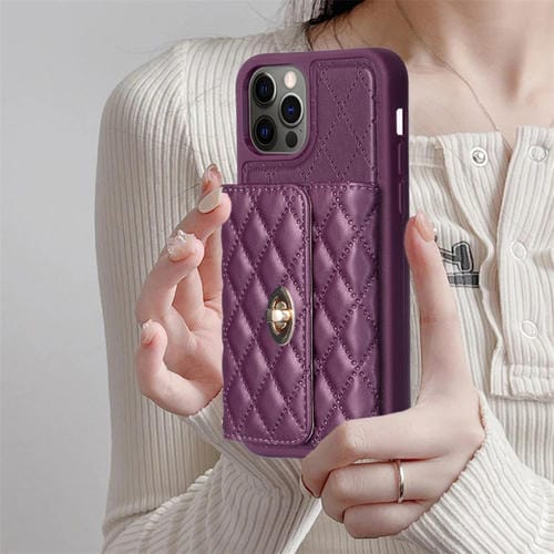 Funda para iPhone 12 Pro Max Cartera Horizontal Hebilla de Metal Rombico Cuero (Púrpura Oscuro)