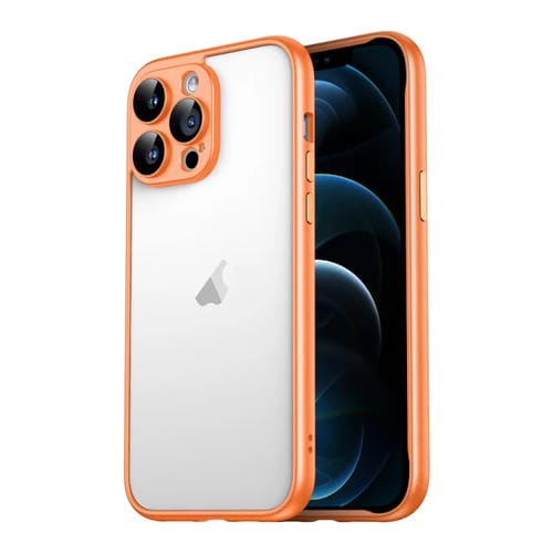 For iPhone 12 Pro Max Macaron PC Phone Pure Edge Frame with Glass Lens Film(Orange)