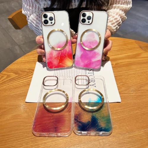 Funda para iPhone 12 Pro Max Marble Magsafe Clear Phone Case (Púrpura)