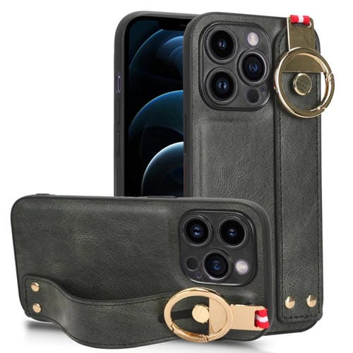 Funda Trasera para teléfono iPhone 12 Pro Max Muñequera de cuero (Verde)