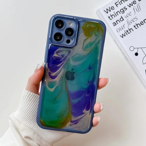 Funda para Teléfono TPU iPhone 12 Pro Max Pintura al Óleo Galvanoplastia (Azul)