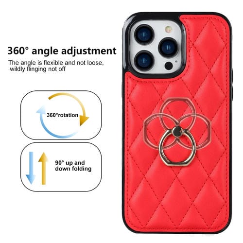 Funda para teléfono iPhone 12 Pro Max Rhombic PU Cuero con Soporte para Anillo (Rojo)