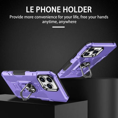 Funda para iPhone 12 Pro Max Ring Holder Armor Hybrid Phone Case (Púrpura)