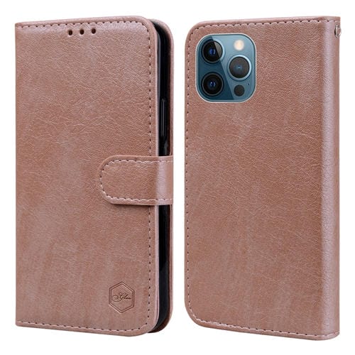 Funda para teléfono iPhone 12 Pro Max textura de cuero aceitado PU + TPU (Champán)