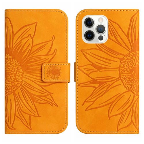 Funda para iPhone 12 Pro Max Skin Feel Flip de Cuero con Cordón y Patrón Sun Flower (Amarillo)