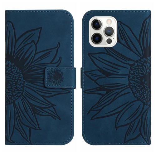 Funda para teléfono iPhone 12 Pro Max Skin Feel Sun Flower Flip Cuero con Cordón (Azul Tinta)