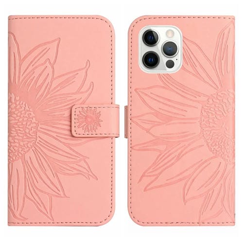 Funda Flip de Cuero para iPhone 12 Pro Max Skin Feel Sun Flower Pattern con Cordón (Rosa)