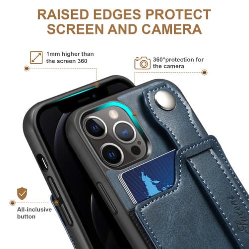 For iPhone 12 Pro Max Suteni 215 Wrist Strap PU Phone Case (Blue)