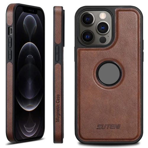 Funda Trasera Suteni G1 para iPhone 12 Pro Max Magsafe Cuero (Marrón)