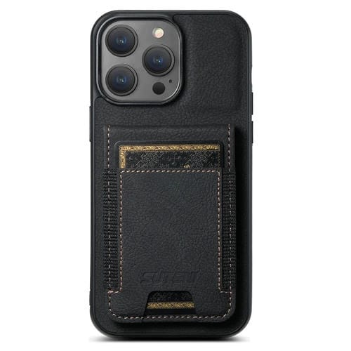 Funda para Teléfono Suteni H03 para iPhone 12 Pro Max con Soporte para Tarjeta Cuero Litchi (Negro)