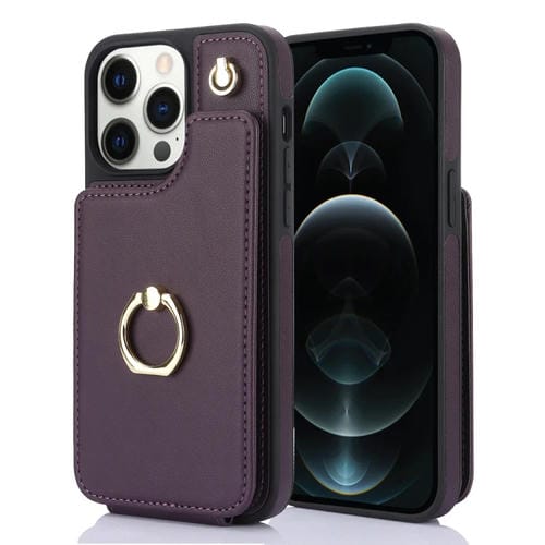 Funda para Teléfono Ym005 Skin Feel Card Bag para iPhone 12 Pro Max con Cordón Largo (Púrpura Oscuro)