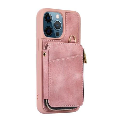 Funda para Teléfono iPhone 12 Pro Max Zipper Card Bag Contraportada (Rosa)