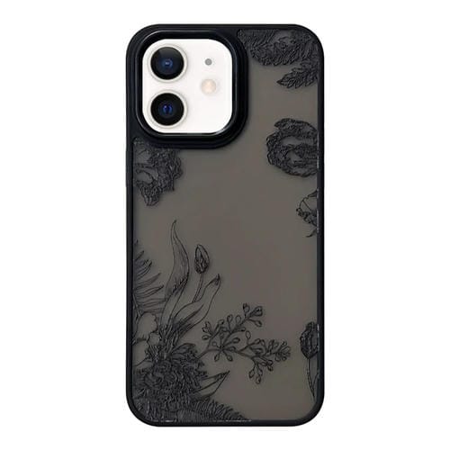 Funda para Teléfono iPhone 12 Skin Feel Matte TPU + PC a Prueba de Golpes (Flor Negra)
