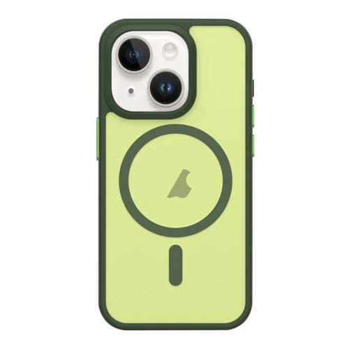 Estuche para Teléfono iPhone 13 Botón de Metal Sensación de Piel Magsafe Mate a Prueba de Golpes (Verde)