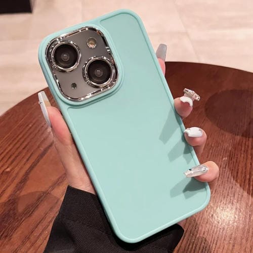 Caja de teléfono para iPhone 13 con marco de Lente galvanizada y Película de Lente (Verde Menta)