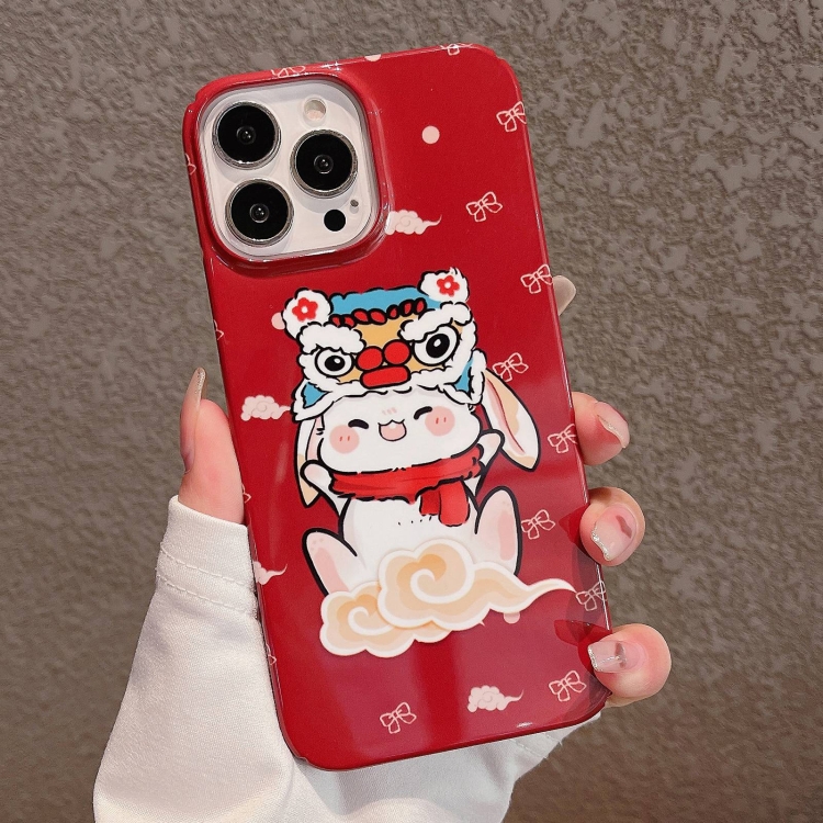 Caja de teléfono para iPhone 13 con patrón pintado para PC (Bunny Red)