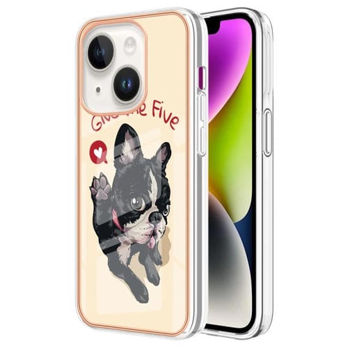 For iPhone 13 Electroplated Marble Double-sided IMD Phone Case (Lucky Dog)