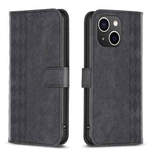 Funda de Teléfono iPhone 13 Cuero En Relieve a Cuadros (Negro)