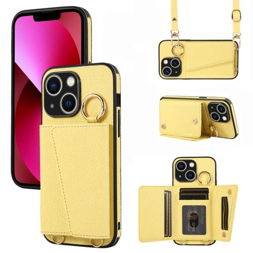 Funda para Teléfono iPhone 13 Contraportada de Cuero con Billetera y Anillo Cruzado (Amarillo)