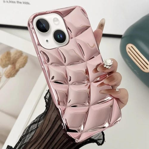Funda para Teléfono TPU iPhone 13 Pintura Metálica Chapada en Cuadros Curvos (Rosa)
