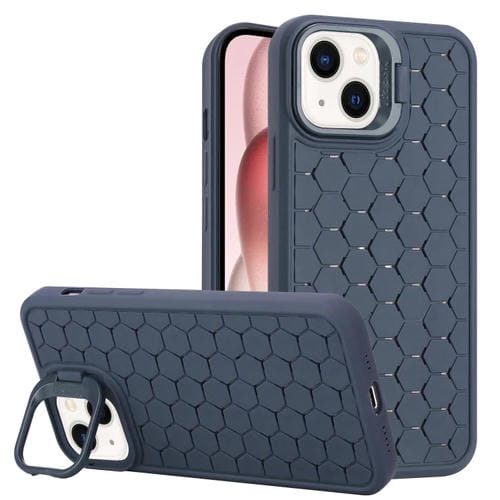 Funda para Teléfono TPU para iPhone 13 con Soporte para Lente Radiante de Panal (Azul)