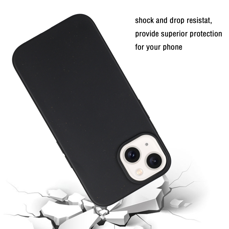 Funda para teléfono iPhone 13 Material de Paja de Trigo y TPU (Negro)