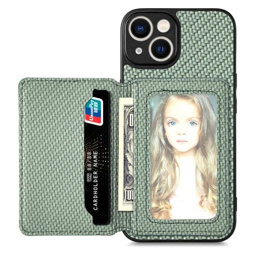 Caja de Teléfono para iPhone 13 Mini con Bolsa de Tarjeta Magnética de Fibra de Carbono (Verde)
